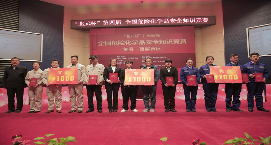 2018年12月7日,由中國石油和化學(xué)工業(yè)聯(lián)合會指導(dǎo),中國化學(xué)品安全協(xié)會、中國化工報社主辦,陜西北元化工集團(tuán)股份有限公司冠名,鄂爾多斯大路煤化工基地管委會協(xié)辦,國家能源寧夏煤業(yè)集團(tuán)有限責(zé)任公司承辦的“北元杯”第四屆全國危險化學(xué)品安全知識競賽西部區(qū)復(fù)賽在寧夏銀川寧東能源基地舉行。集團(tuán)公司受邀參加此次比賽,公司領(lǐng)導(dǎo)高度重視,經(jīng)過選拔,挑選出安全知識豐富、生產(chǎn)經(jīng)驗(yàn)較強(qiáng)、業(yè)務(wù)能力突出的3名員工組成代表隊(duì)及20多人組成的啦啦隊(duì)參加比賽,并獲得了第三名好成績。