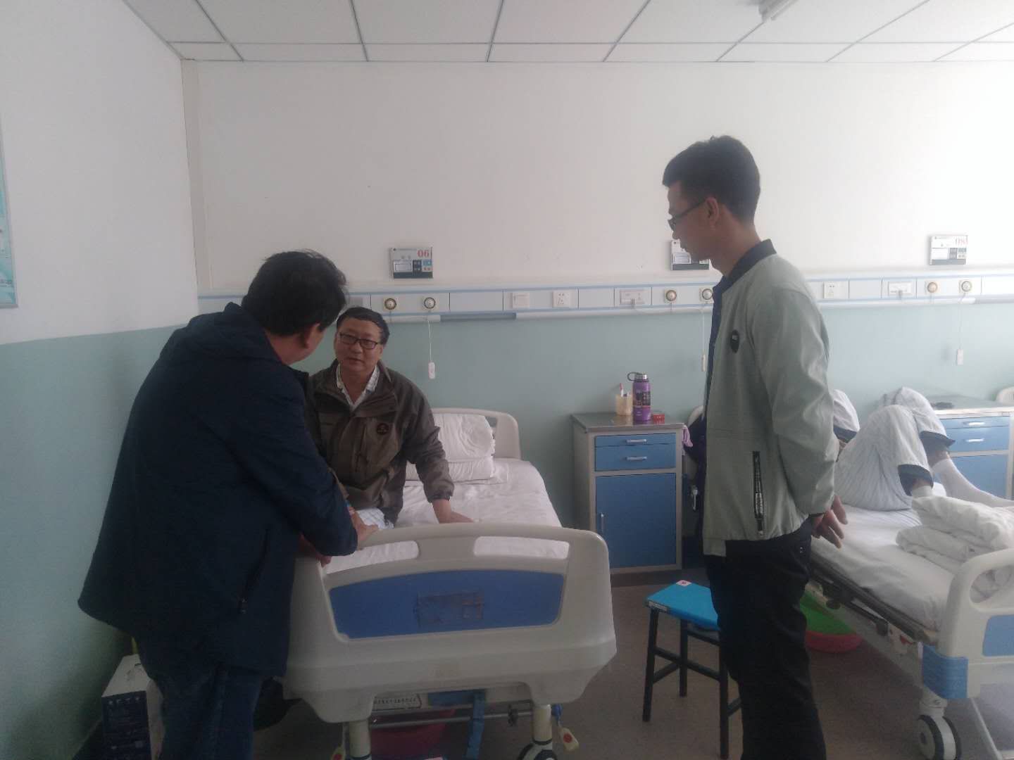 316日,資源再生有限公司唐書(shū)記在生料裝置長(zhǎng)許亮的陪同下前往吳忠上橋醫(yī)院看望生病住院?jiǎn)T工雍喜。唐書(shū)記在病床前親切的詢問(wèn)雍喜的手術(shù)情況并囑咐家屬用心照顧,爭(zhēng)取早日康復(fù)。