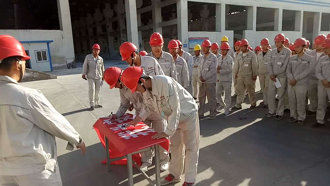 隨后總經理尚繼榮帶領大家宣讀以:“我是金昱元集團一名員工,為了個人安全健康,為了家庭幸福美滿,為了公司穩步發展,我鄭重宣誓:忠誠企業,恪盡職守,關注安全,珍愛生命。我堅決做到:牢記安全第一,遵守規章制度,遵守操作規程,遵守勞動紀律,不違章,不冒險,不留隱患,不出事故。我將以實際行動,爭做安全合格員工,確保生產安全,讓企業放心”為內容的安全誓詞。最后,在尚總的帶頭下,所有參會人員在“防風險、除隱患、遏事故”的條幅上簽名,承諾自己將以的實際行動,履行好本崗位的安全職責。簡單的一個簽名不僅簽下對自己和家人的一份責任,同時也簽下對企業安全發展的一個承諾。