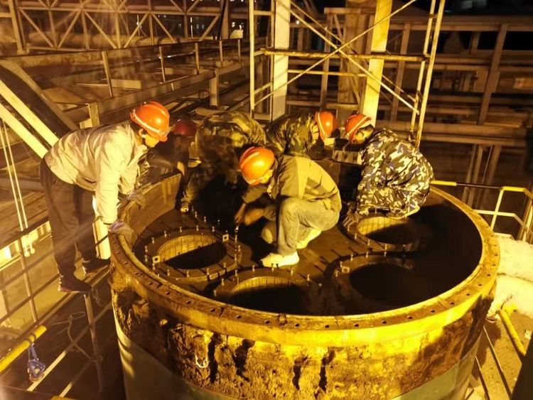 清晨,我看到兢兢業(yè)業(yè)的管理人員和朝氣蓬勃的年輕同事,他們“武裝上陣”頭戴安全帽,手帶防護(hù)手套。拿著各類(lèi)方案和各類(lèi)工具,快速地奔向各個(gè)檢修點(diǎn)。我看到他們忙碌的身影和為了完成檢修任務(wù)而焦灼的神情,大大小小的設(shè)備里三人一伙,兩人一組,有更換閥門(mén)的,有更換閥欄的,每個(gè)人手上、身上都沾滿了油污,他們沒(méi)有抱怨,只是默默地付出著。