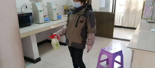 擦拭操作臺、門把手,進行衛生消毒,工作的有條不紊。