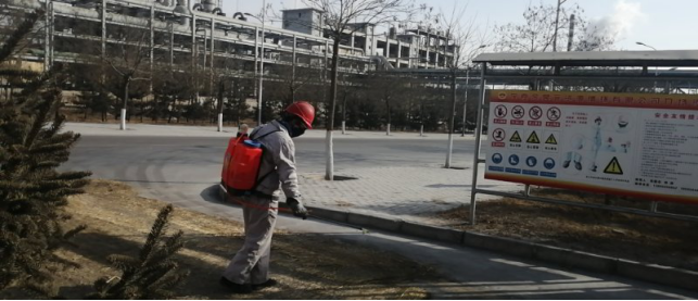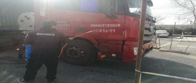 在公司北大門,他們對進出廠區職工及車輛登記,嚴格“疫情”防控工作。