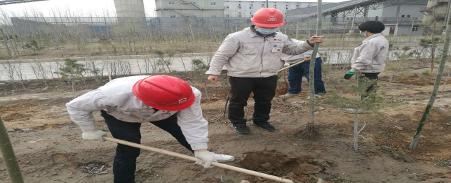 人勤春來早,植樹正當時。現場,處處是忙碌的身影,個個熱情洋溢、干勁十足,有的拿鐵鍬,有的運樹苗,你追我趕,比干勁、比進度,各個環節銜接有序,樣樣做得認真到位,個個忙得滿頭大汗。到處都是忙碌的身影和勞動的歡聲笑語……一番熱火朝天的勞動后,一棵棵新栽種的樹苗亭亭玉立,在明媚的春光中展現勃勃生機,為初春的廠區增添絲絲活力。一天忙碌后,1000余株樹苗在此“安家落戶”。