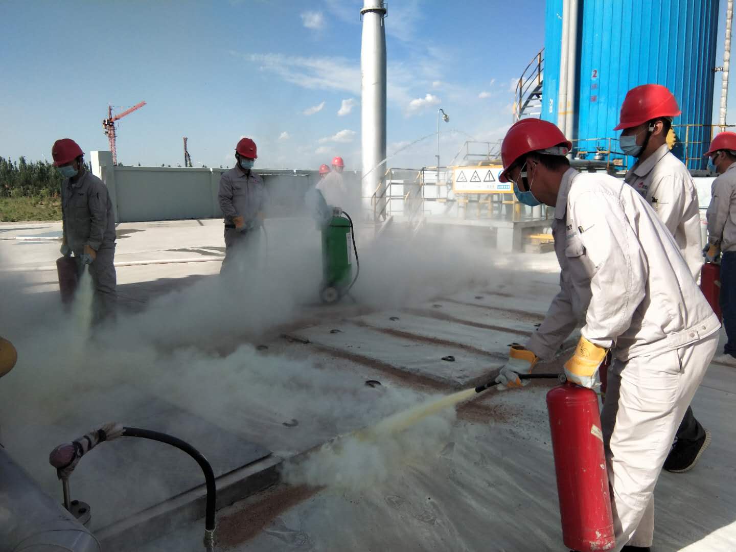 為提高公司事故防范和應急保障能力,及時有效地處理火災事故,避免或降低可能發生的事故對公司造成經濟損失和不良影響,根據公司“安全生產月”活動安排,6月23下午16時50分,興昊永勝鹽業公司緊緊圍繞“消除事故隱患,筑牢安全防線”的活動主題,組織開展了一次燃油庫區回油管路漏油導流溝著火事故應急演練。本次事故演練由副經理張建東主持,各科室、裝置50余人參加,同時還邀請了片區主管領導和專業工程師參加活動。