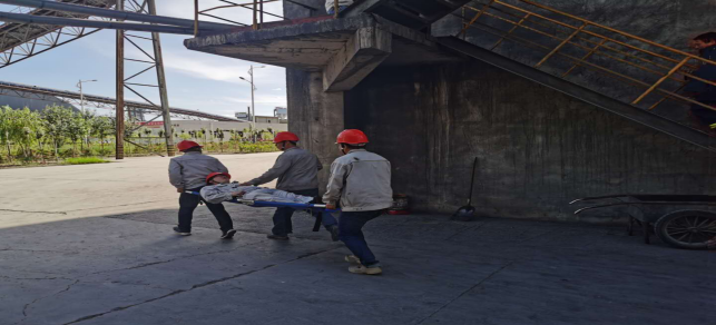 按照預(yù)案,事故發(fā)生后,崗位人員或現(xiàn)場作業(yè)人員發(fā)現(xiàn)火情并有人員受傷后,立即采取應(yīng)急措施,用對講機(jī)向中控室和當(dāng)班調(diào)度報告火情,當(dāng)班調(diào)度接到報警后,立即啟動應(yīng)急預(yù)案,通過對講機(jī)通知中控操作員停止輸煤系統(tǒng),回轉(zhuǎn)窯止料,生產(chǎn)系統(tǒng)緊急停車和電器人員對煤粉制備系統(tǒng)斷電,滅火組隊員趕赴現(xiàn)場,對現(xiàn)場情況進(jìn)行檢查確認(rèn),通報主管生產(chǎn)副總經(jīng)理。同時,迅速成立以總經(jīng)理為首的應(yīng)急救援小組,下設(shè)消防搶險滅火組、安全警戒組、醫(yī)療救援組、通訊監(jiān)控組、設(shè)備搶修組、環(huán)境監(jiān)測組、后勤保障組、生產(chǎn)保障組,各小組各司其職,從發(fā)現(xiàn)火情,到確定火災(zāi)類型并針對性的制定滅火方案,組織人員快速施救,最終確定火源熄滅,解除預(yù)警,整個過程一氣呵成,處理得當(dāng),各項演練任務(wù)圓滿完成。