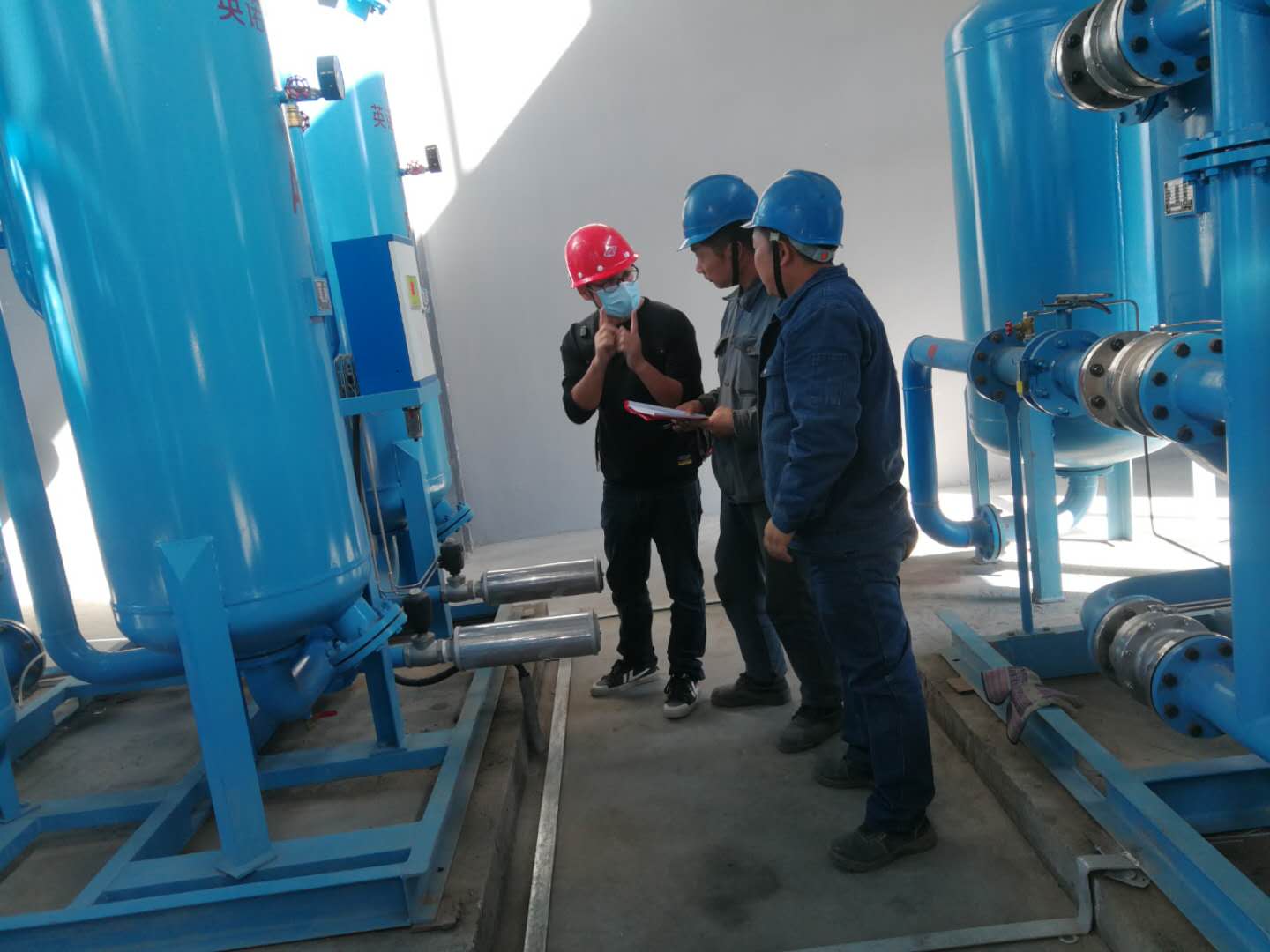 截止發(fā)稿前,空分制氮已經(jīng)開機(jī)打壓試車,發(fā)現(xiàn)漏點(diǎn)及時(shí)消除后再次重復(fù)對(duì)后系統(tǒng)儲(chǔ)罐設(shè)備打壓試車。試壓的同時(shí)本公司維修人員積極向廠家技術(shù)人員請(qǐng)教空分制氮設(shè)備的常見故障及處理方法。