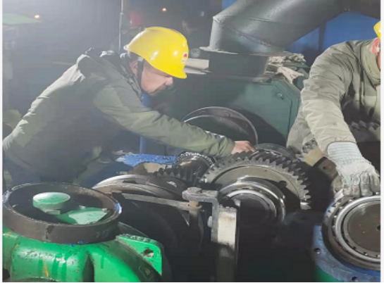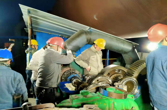 14日,塞北二九天氣室外溫度已在零下16℃左右,傍晚夜幕降臨,員工們在燈火通明的回轉窯主減速機檢修現場,迎著寒風刺骨,卻是熱火朝天,一派繁忙大干的景象。由于生產任務重,檢修時間緊,公司領導班子帶領員工克服種種困難,戰勝諸多不利因素,不畏嚴寒,加班加點趕進度,爭分奪秒搶工期,積極推進回轉窯主減速機恢復正常運行。
