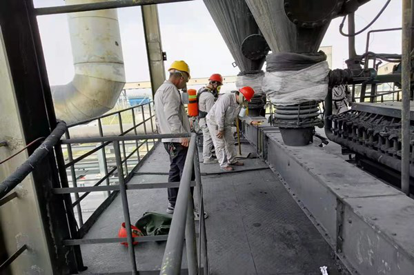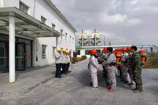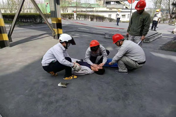 本次演練模擬以煤氣泄漏、人員中毒為方案開展的應急救援演練,電石二裝置中控室操作人員發(fā)現(xiàn)3#凈化刮板機故障,通知兩名巡檢人員攜帶報警儀及防毒面具至現(xiàn)場檢查設備故障原因,前方行走人員至四層樓梯口處看見刮板機側板磨穿,刮板機卡住,由于未打開一氧化碳報警儀,未及時發(fā)現(xiàn)煤氣泄漏,上前查看時吸入煤氣中毒暈倒,后方協(xié)同巡檢人員發(fā)現(xiàn)后逐級進行匯報,公司迅速啟動了應急預案,按照預案對事故現(xiàn)場進行了封鎖、檢查及搶修,在整個演練過程中,應急救援的物資裝備及時到位,參加演練的各專業(yè)隊伍行動迅速,采取的救援行動基本恰當。