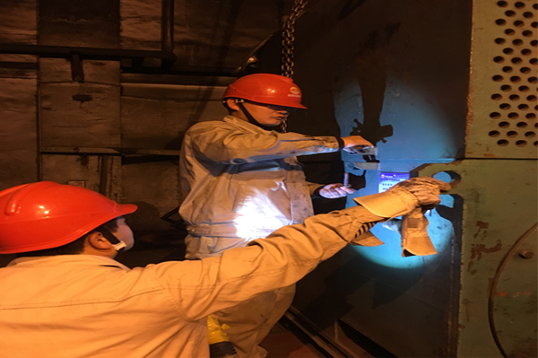 到了夜間檢修現場更是熱火朝天,即使是如此寒冷的天氣,也無法阻擋大家搶修工作的熱情。焊花飛濺,一道道焊光像放電影一樣,把在場的檢修人員的身影投射在墻面上,時顯時隱。塑料焊、磨光機的聲音此起彼伏,一道道焊條像在管線上跳舞一樣,走出一圈一圈的軌跡,完成著一道道工藝管線的修復工作。隨著時間的推移,檢維修中遇到的問題也被一一解決。終于,在次日凌晨1點經過大家26小時的奮戰和努力圓滿的完成了所有檢修項目。隨著合成爐的正常運行,為這次搶維修作業畫上了圓滿的句號。也為團結,拼搏,求實,創新的金昱元精神做出了完美的詮釋。