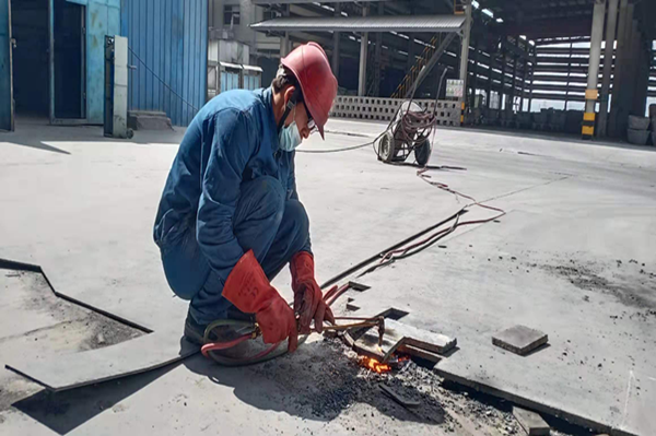 炎熱的成品庫旁,他們正在安裝區(qū)域防護(hù)網(wǎng)。測量、打眼、安裝、緊螺絲,每一個(gè)細(xì)節(jié)都不能馬虎大意,雖頂著烈日,他們干工作有條不紊,仔細(xì)規(guī)劃著距離,精心安裝每一扇防護(hù)墻。相較于爐面高溫檢修,此刻的溫度,他們耐得住、經(jīng)得住。是的,他們已是千錘百煉,經(jīng)得起這“火”的考驗(yàn)。