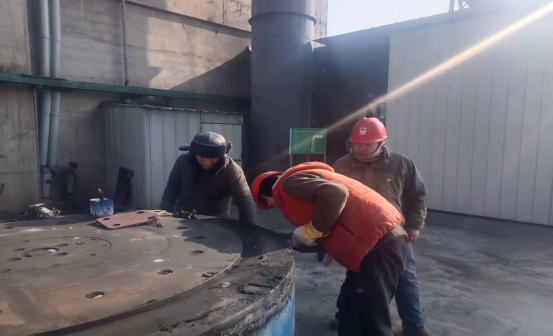 12月22日至28日,資源循環公司進入冬季檢修階段,10℃以下的氣溫,是對檢修工人的考驗。此次重點對生料輥壓機柱釘輥軸更換;二次配料生料干粉轉子秤、電石渣干粉轉子秤技改;烘干破碎機出口管道內的積料清理、內襯耐磨板的修復;窯尾電收塵器內部清灰,極板極絲、振打裝置以及瓷轉軸、瓷缸檢查;預熱器系統 C3 旋風筒結皮、分解爐內結皮、窯尾煙室及縮口處的結皮清理;三次熱風管道內的積料清理以及彎頭處的耐火材料修復;回轉窯窯尾密封、大齒圈的檢查調整;窯頭噴煤管的檢查更換;煤立磨減速機、磨輥、磨盤瓦的更以及篦冷機液壓系統、篦板撥料棒的檢查與維護等10項,次項計劃檢修內容41項。