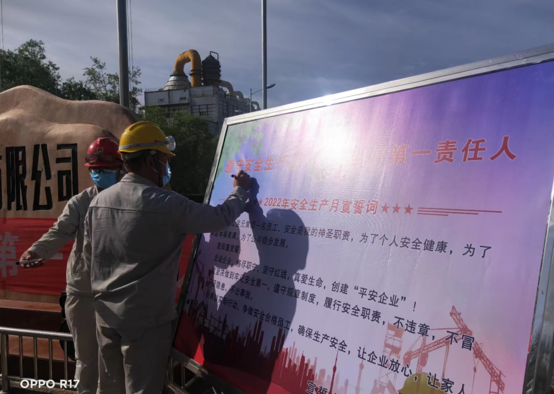 啟動儀式上,安全總監(jiān)帶領(lǐng)全體參會人員進行了莊嚴宣誓,每一位員工都做出了自己對待安全工作的承諾,并簽下自己的姓名。