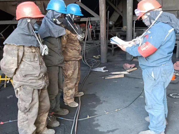 公司每天7:25進行全體參與檢修人員點名,由公司安全環保科對前一天檢修任務進行點評和通報,生產科安排部署當天的工作任務,為每天的工作開展打下良好的基礎。