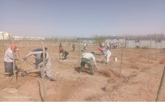 公司每年的春季都會(huì)制定本年度的環(huán)保節(jié)能目標(biāo),對(duì)廠區(qū)內(nèi)的綠化設(shè)施進(jìn)行完善,加大綠化面積,組織一年一度的植樹活動(dòng)。由于公司主要是生產(chǎn)建筑材料的,以普通硅酸鹽水泥和水泥原材料熟料為主的化工企業(yè),必不可少的廠區(qū)硬化占到了一定的面積,導(dǎo)致綠化覆蓋率較少。但是就是這樣的條件下,公司領(lǐng)導(dǎo)還是在有限的廠區(qū)綠化面積里盡可能的多種樹,改善員工的工作生產(chǎn)環(huán)境,保護(hù)環(huán)境衛(wèi)生。公司領(lǐng)導(dǎo)組織員工在原料堆廠的邊上再種一排楊樹,由于原料廠邊上常年受運(yùn)輸車輛的碾壓,地質(zhì)堅(jiān)硬,鐵鍬等普通挖土工具挖土困難,導(dǎo)致種樹進(jìn)度緩慢。于是公司領(lǐng)導(dǎo)就協(xié)調(diào)安排了挖掘機(jī)進(jìn)行挖樹坑,挖好了樹坑,就安排各裝置對(duì)于各自區(qū)域的樹苗進(jìn)行移栽,經(jīng)過大家的齊心協(xié)力,樹苗都被小心翼翼的放到了新挖的樹坑里,你扶樹苗,我埋土,好不熱鬧,在大家共同努力下一排整齊的樹苗矗立在原料堆場(chǎng)的邊上。守護(hù)著這邊我們?yōu)橹畩^斗的熱土。