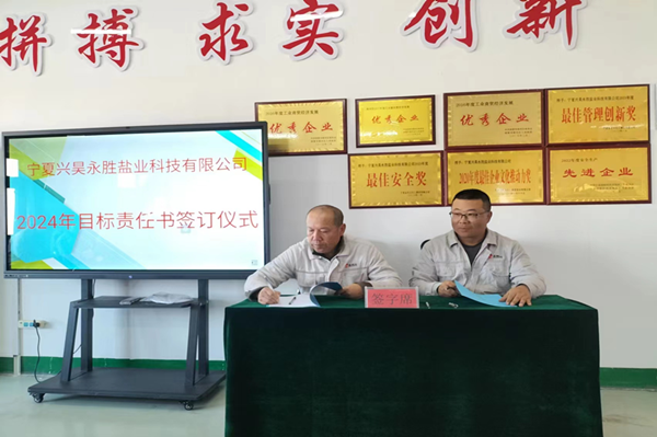 2024年1月8日下午,鹽業公司組織召開了2023年度總結表彰暨2024年目標責任書簽訂大會。會議由總經理尚繼榮同志主持,副經理、科室長、裝置長、受獎人員及員工代表參加。
