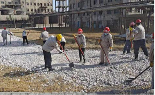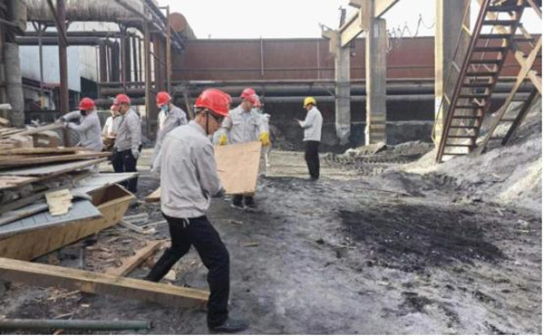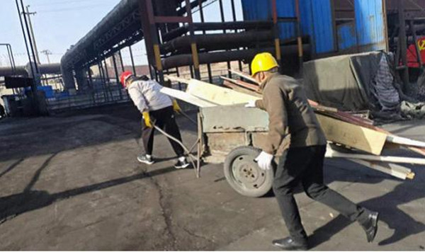 參與勞動的人員發揚不怕苦、不怕累、不怕臟精神,三五成組、互相配合、分工明確、齊心協力,搬運雜物木板、揮鍬坪土鏟草、清理鐵皮及塑料板,活動現場熱火朝天。經過一上午緊張有序的勞動,99%堿廠房周邊堆砌的雜物、雜草及亂堆放物品都被清理干凈,生產現場環境恢復了往日的整潔。