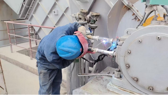 隨著一聲清脆的哨響,檢修工作正式拉開帷幕。焊工老李戴著防護(hù)面罩,手持焊槍,在水泥磨的縫隙間穿梭;」忾W爍,焊花飛濺,如同一朵朵金色的煙花在黑暗中綻放,他全神貫注地修補(bǔ)著磨體上的裂痕,每一個焊點都凝結(jié)著他的精湛技藝;鉗工師傅們則圍著球磨機(jī),像一群經(jīng)驗豐富的“外科醫(yī)生”,小心翼翼地拆卸下磨損的部件。扳手與螺栓碰撞發(fā)出的叮當(dāng)聲,與拆卸設(shè)備時的摩擦聲交織在一起,奏響了一曲獨(dú)特的工業(yè)樂章。