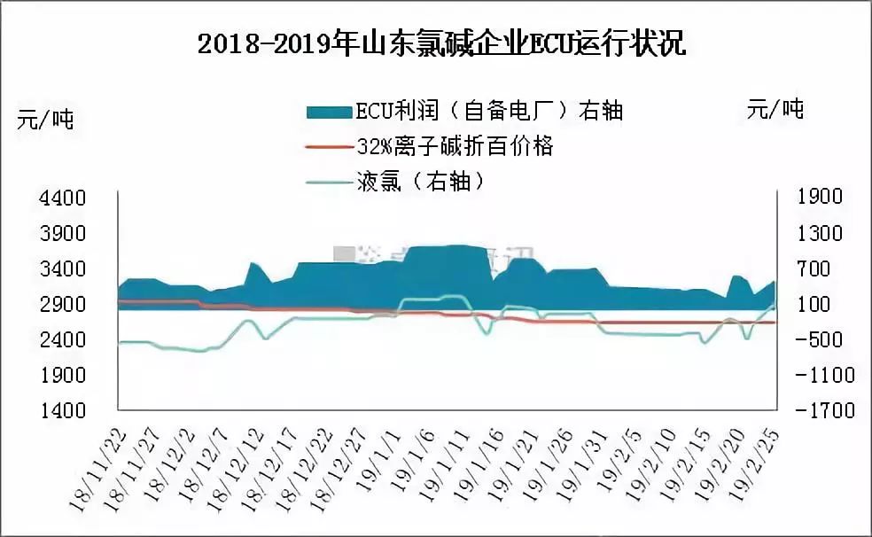 進入2月份,山東地區液堿市場價格表現平淡,高度液堿價格出現下調,低度液堿價格窄幅整理,各家根據自身情況靈活調整,近期液氯市場價格出現“轉正”,氯堿企業整體盈利情況如何呢?