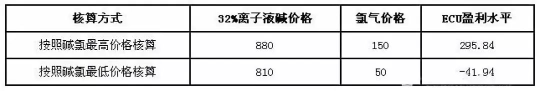 按照堿氯最低價格核算,無自備電廠的氯堿企業ECU平均虧損41.94元/噸,而按照最高價格核算,無自備電廠的氯堿企業盈利295.84元/噸。