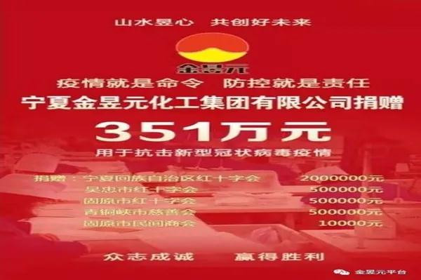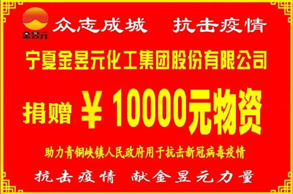 面對疫情,我們每個人都在盡自己最大的努力,金昱元也不例外。就如董事長代良云所說:“企業做得越大,就必然要去承擔更大的社會責任,創造更大的社會價值。”金昱元集團也是這樣做的,疫情當前,金昱元集團用實際行動踐行社會責任和使命擔當,向自治區紅十字會、吳忠市紅十字、固原市紅十字會、青銅峽市慈善會、青銅峽市邵剛鎮、青銅峽鎮、固原市工業商業聯合會共捐贈373萬元。同時無償向固原市、吳忠市、青銅峽市、靈武市、中寧縣、同心縣、涇源縣等區內118家機關、學校、鄉鎮、企事業單位捐贈消毒液原液近400噸。