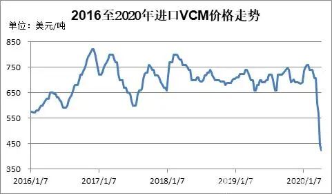 圖2 2016至2020年進口VCM價格走勢