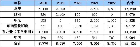 表2 2018-2022年全球乙烯擴建情況(單位:千噸)