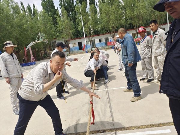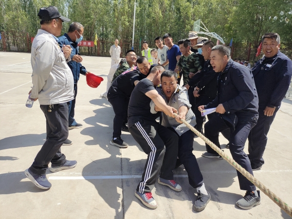 在拔河比賽現場,隨著裁判一聲令下,比賽迎來激動人心的時刻。比賽雙方隊員前腿瞪、后腿弓,凝神聚力,“一二,一二”的口號聲震耳欲聾,漲紅的臉頰、暴突的青筋,彰顯雙方激烈對峙,互不相讓的競技狀態。