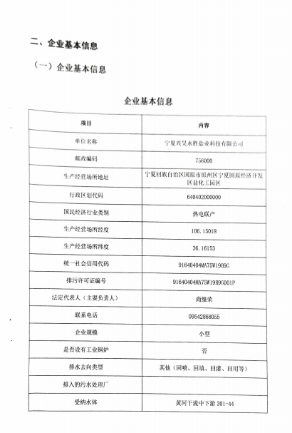 寧夏興昊永勝鹽業科技有限公司2024年排污許可執行報告